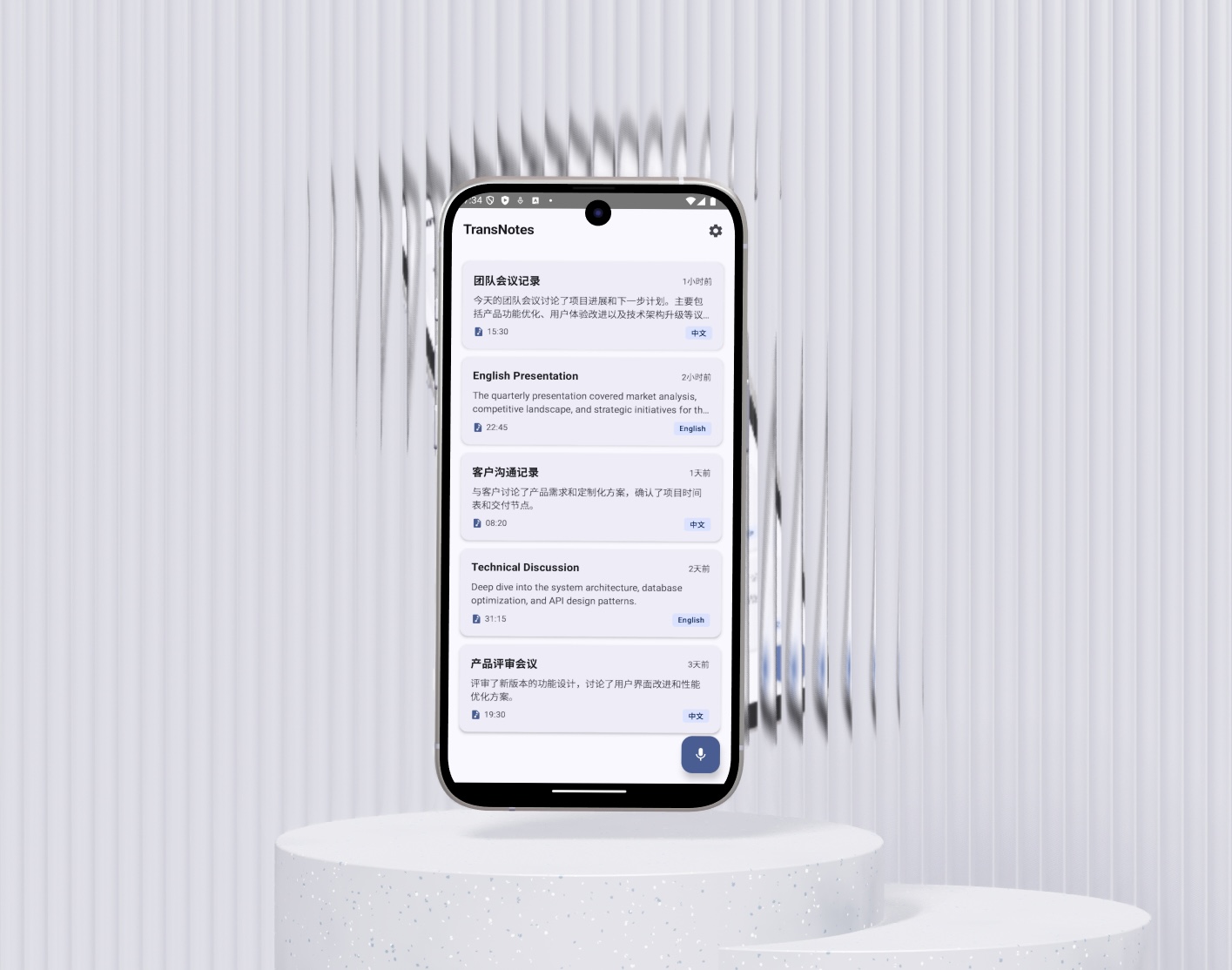 TransNotes is an AI-powered meeting app for Android that seamlessly monitors system audio, converting it into text in real-time and providing simultaneous translation. Designed for multilingual conferences, it ensures effortless communication and note-taking, empowering you to engage confidently across languages.